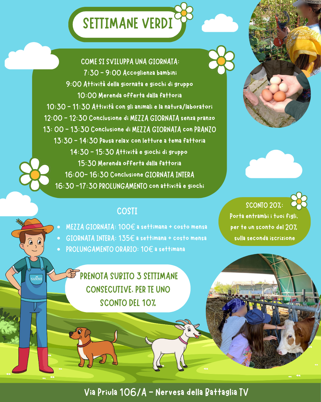 I nostri centri estivi “Settimane Verdi” nella fattoria didattica Sanmi sono organizzati da giugno a settembre e accogliamo bambini della scuola dell’infanzia e primaria, dai 4 agli 11 anni.